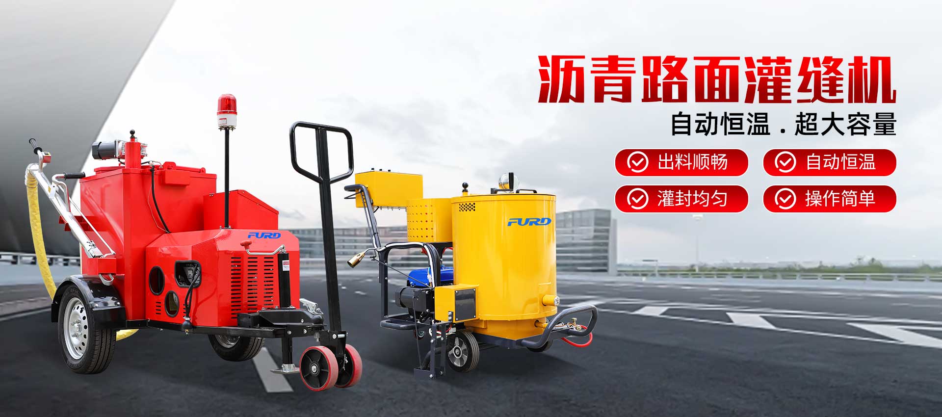 主要有小型壓路機(jī)、瀝青灌縫機(jī)、熱熔劃線(xiàn)機(jī)、井蓋切割機(jī)、二次結(jié)構(gòu)澆筑泵等