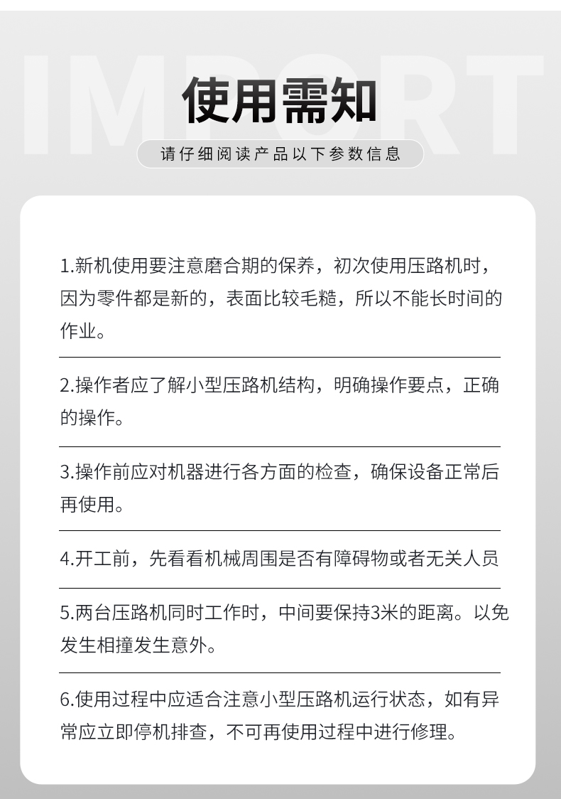 產(chǎn)品簡介:手扶單輪(汽油)壓路機進口液壓系統(tǒng)主要用于溝渠基礎(chǔ),道路,體育場地的壓實整平,也可用于壓實瀝青表面的作業(yè)。